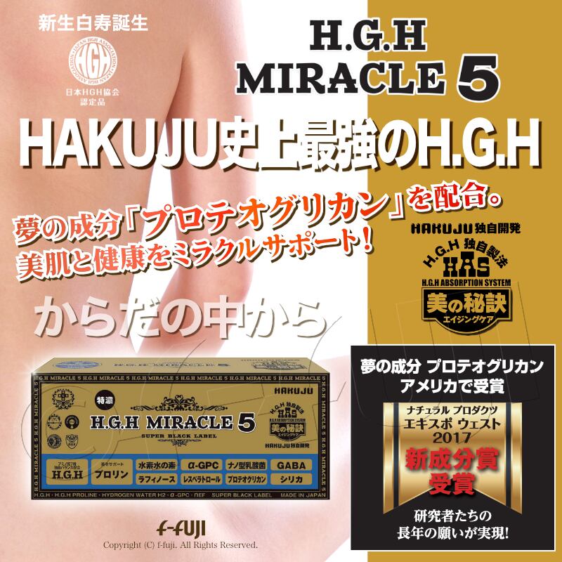 2箱セット【最新】お待たせしました。過去最強最高の H.G.H MIRACLE5 SUPER BLACK LABEL 1箱17gX31袋入り プロテオグリカン配合 白寿BIO医研 HGHの最高峰 HGH協会認定品 アミノ酸バランス配合 サプリメント 送料無料 | HGH SHOP f-fuji